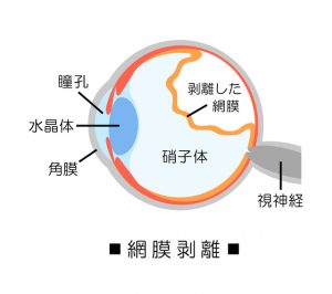 網膜剥離は、徐々に網膜が剥がれていく進行性の疾患なので、放置すると失明に至ることもあるため、早期の発見と適切な処置が必要になります。